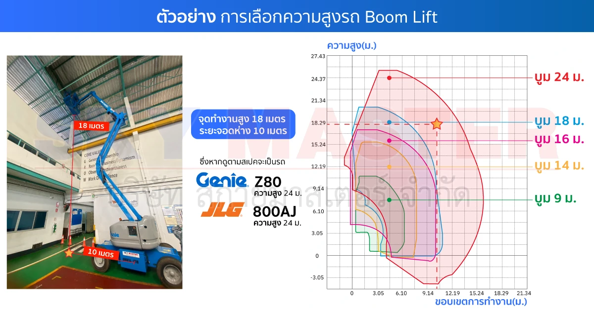 ตัวอย่างการเลือกความสูง รถ Boom Lift