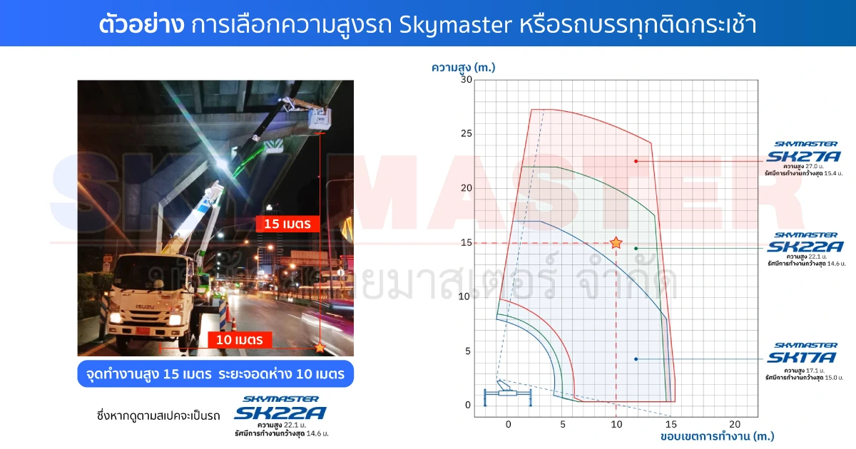 ตัวอย่างการเลือกความสูงรถ Skymaster หรือรถบรรทุกติดกระเช้า