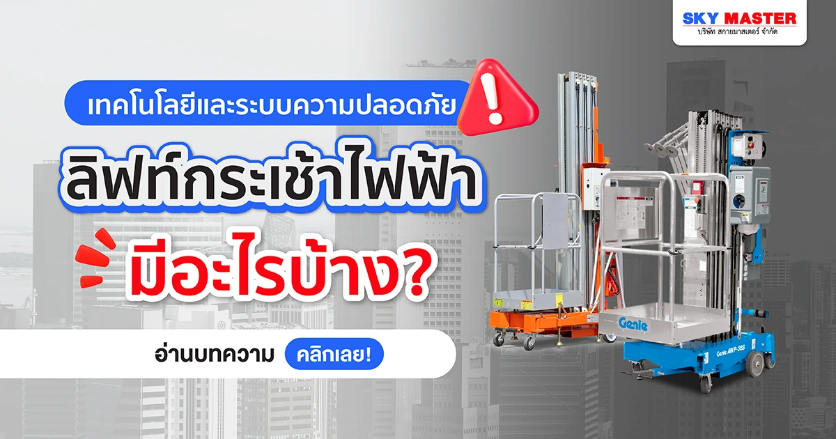การเลือก ลิฟท์กระเช้าไฟฟ้า สักตัวเพื่อมาใช้งาน สิ่งที่สำคัญและจำเป็นมาก ๆ ที่ควรคำนึงถึงเป็นอันดับแรกคือความปลอดภัยครับ เพราะเราใช้เครื่องมือเหล่านี้กับมนุษย์จริง ๆ ไม่ใช่หุ่นยนต์ เมื่อเกิดเหตุไม่คาดฝันขึ้น ความปลอดภัยจึงเป็นสิ่งที่ควรมีอย่างยิ่ง ลิฟท์กระเช้าจึงต้องมีระบบป้องกันต่าง ๆ ที่ช่วยให้ผู้ปฏิบัติงานทำงานได้สบายใจมากขึ้น วันนี้เราเลยจะมาแนะนำเทคโนโลยีที่มีในลิฟท์กระเช้าประเภทนี้กันครับ